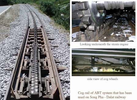 The Da Lat railway was installed approximately 16 km of cog railway belonging to type Abt - two tongues on 3 segments of railway which have the largest slope from 10 to 12%: The cog segment of Song Pha - Eo Gio was approximate 9 km and the slope was 12% . The cog segment of Dran – Hanh station was about 4km and the slope was 11.5% . The cog segment of Da Tho - Trai Mat was about 2km and its slope was 6%.