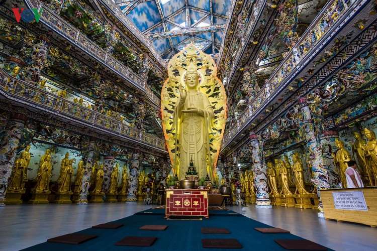 1st floor with 108 spaces church Thousand-eyed subjects. Electricity within Shakyamuni Buddha 49 meters high including the lotus throne is made of reinforced concrete outer side is trimmed with gold reliefs Lemma Tho scene vividly.