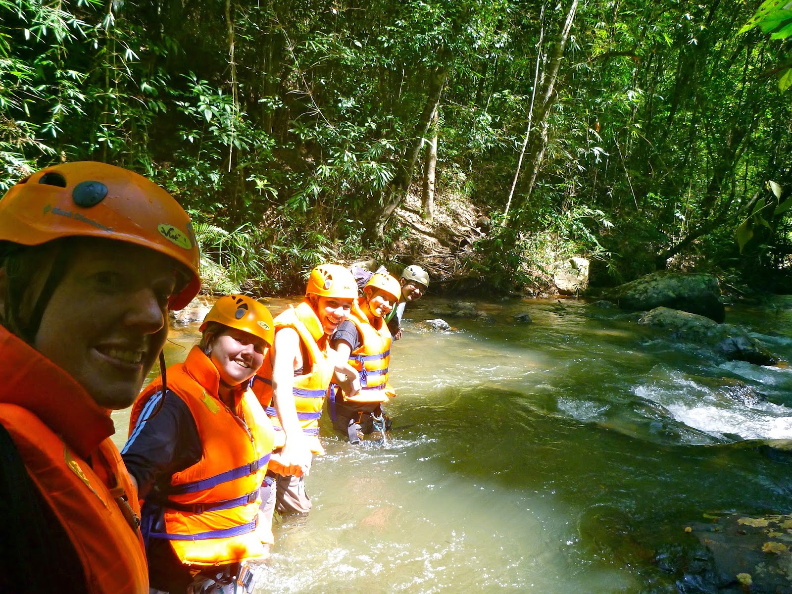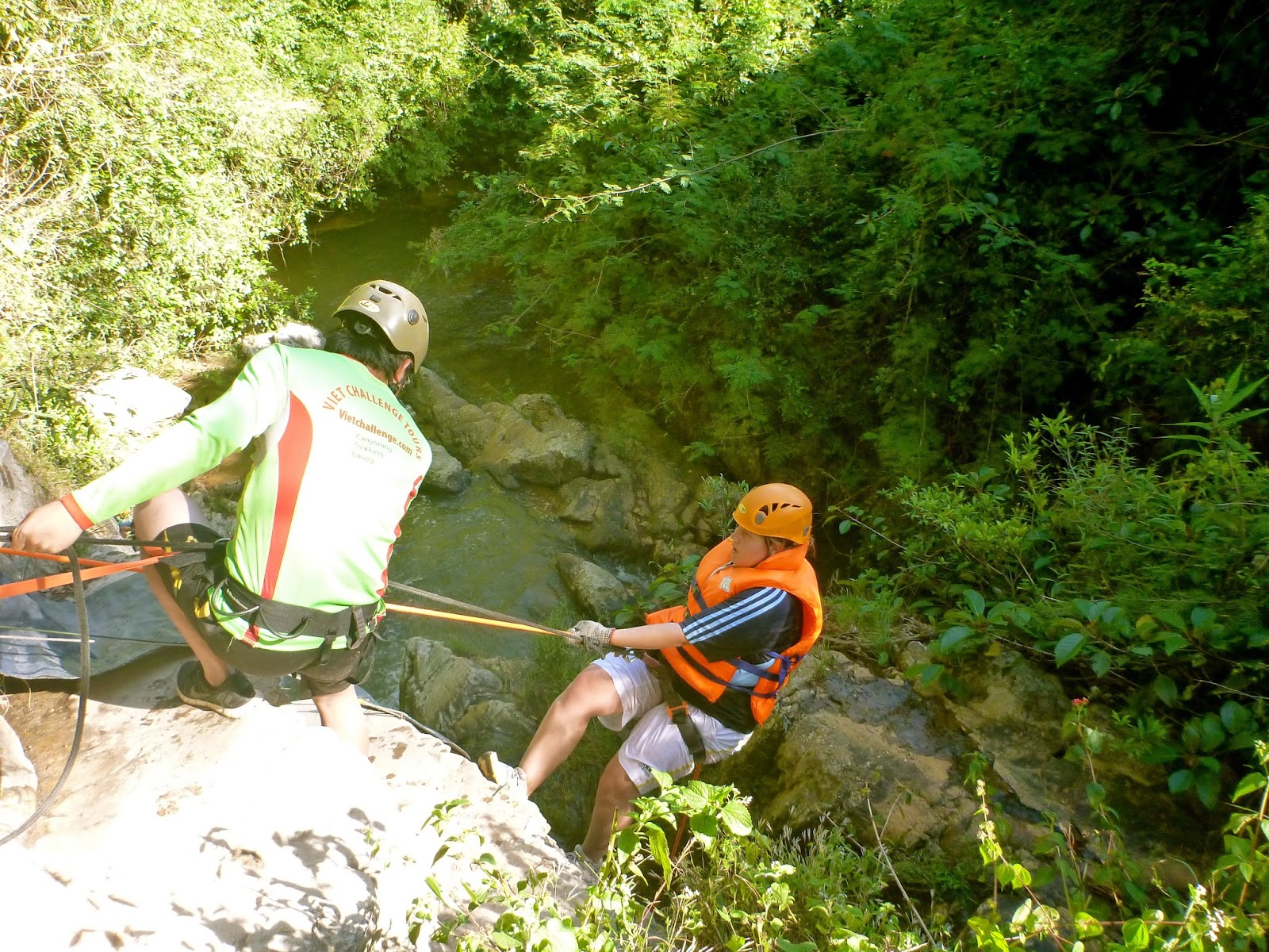 Over the next several hours, we hiked along the canyon, waded across rivers, rappelled down ever-more-frightening waterfalls, jumped from higher-than-sanity-should-allow cliffs, and barreled down slippery water slides. We even got to share some intimate moments together during a “sexy water slide” which challenged my personal space limits. If you want to know what is involved in the sexy water slide, I’m going to make you travel to Dalat and find out for yourself. It’s just too intimate for me to describe here onSamantha in Saigon.