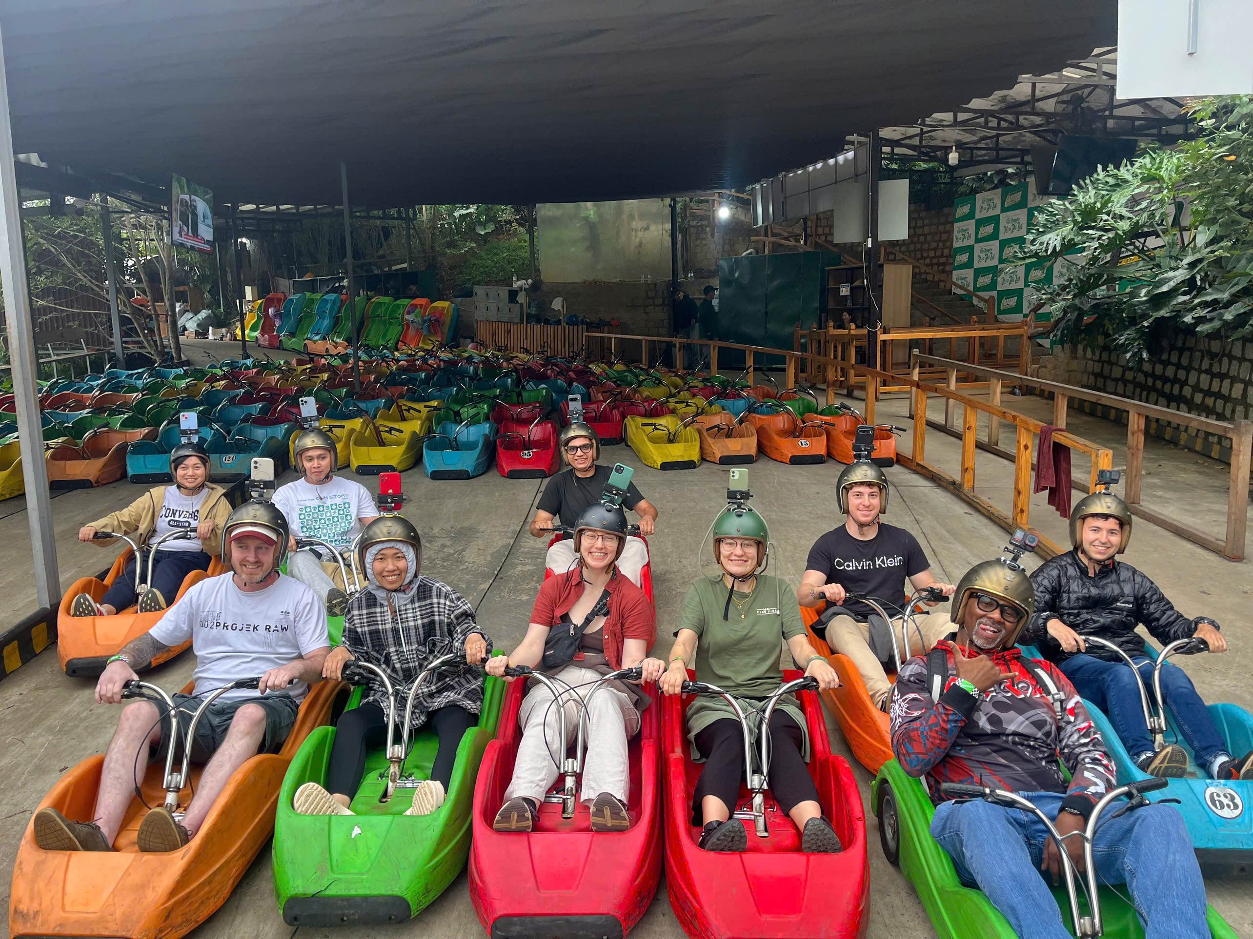 Continue to the Go-Kart / Luge Kart experience, a Mario-Kart style activity surrounded by the scenic Dalat Flower Highlands.