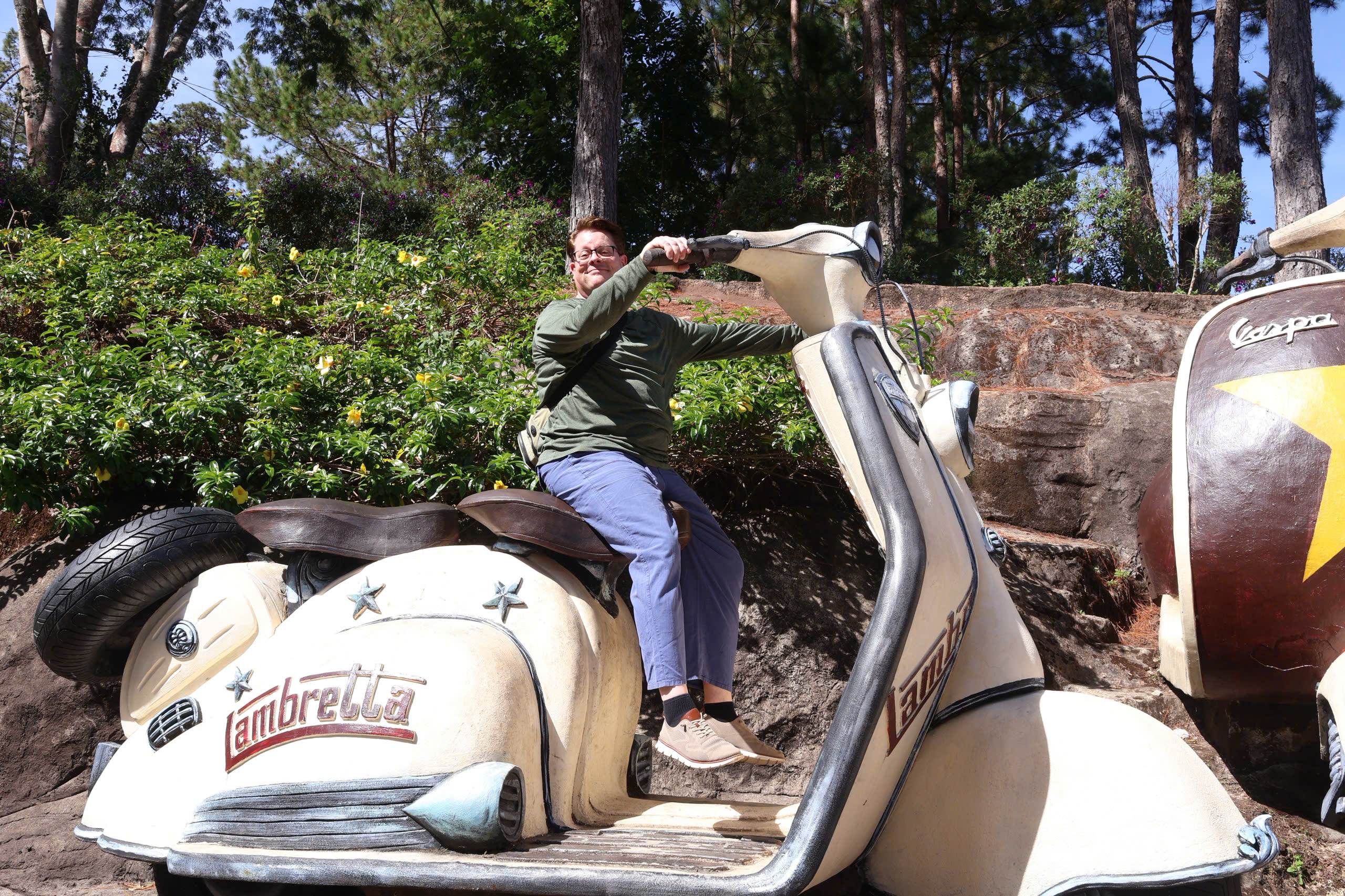 Riding a "dirt bike" – literally! This clay Lambretta is a classic.